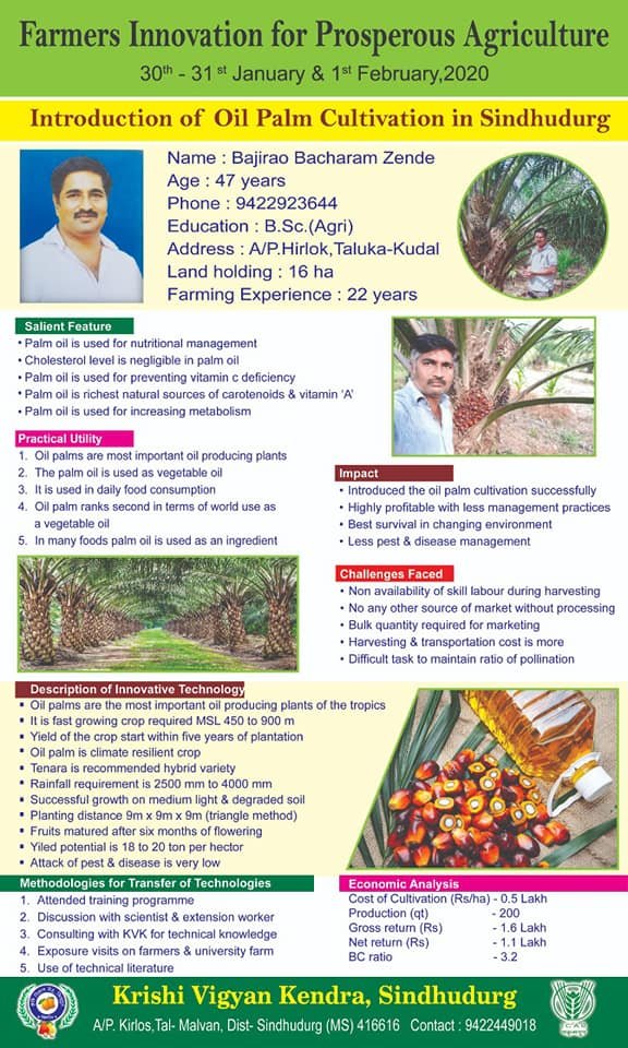 Commercial Cashew production through irrigated approach Introduction of oil palm cultivation in Sindhudurg